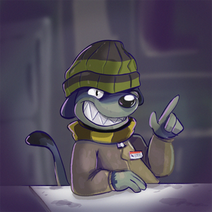 A bipedal, scruffy rat creature that runs a shady weapons and items store in his trailer.