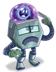 A robot and electric wisp that work together in a symbiotic, mutualistic relationship to survive.